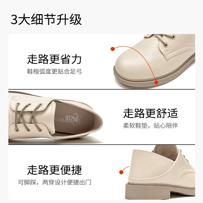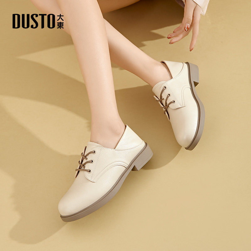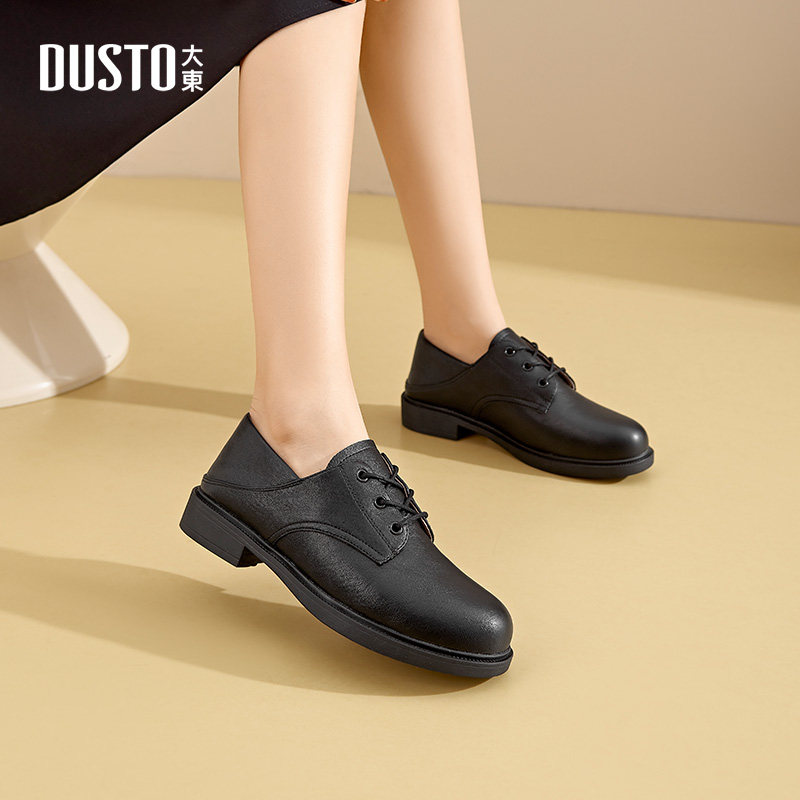 大东女单鞋2026春季新款时尚深口鞋圆头系带小皮鞋低跟方跟牛津鞋