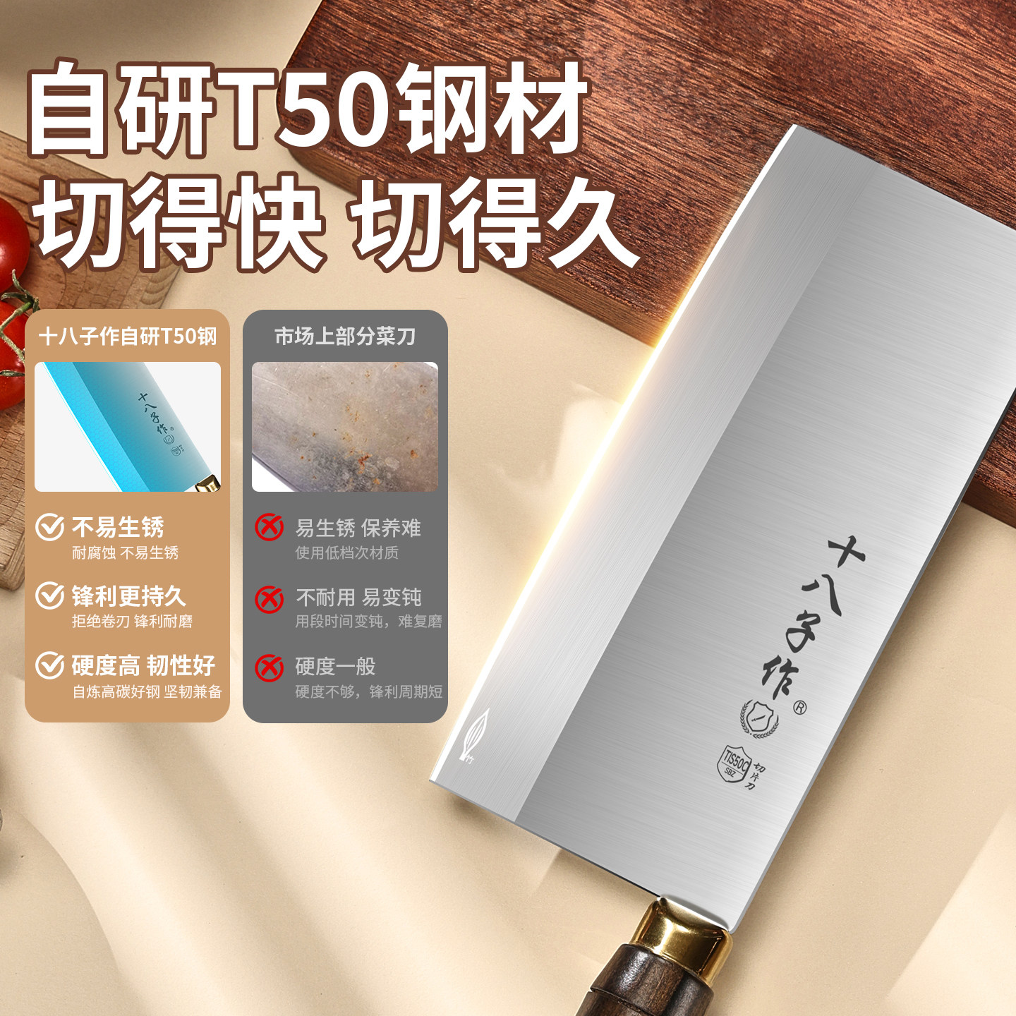 十八子菜刀官方旗舰店正品斩切两用刀家用切肉刀T50钢刀厨师专用