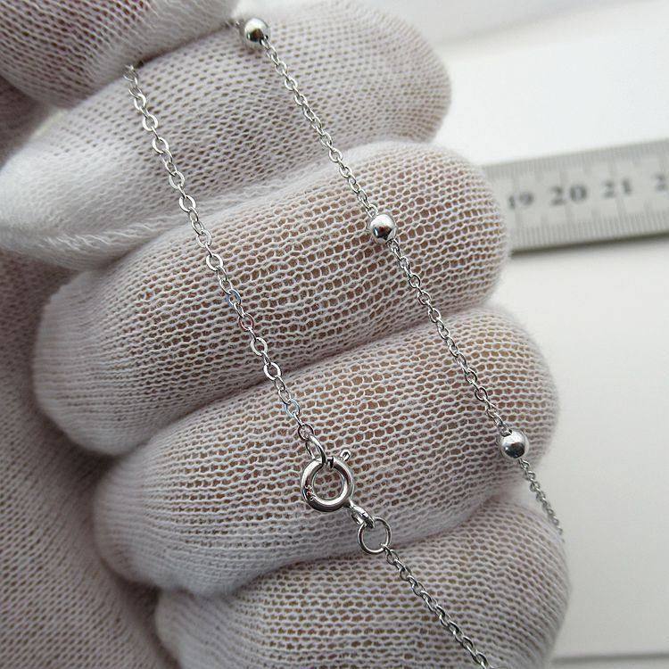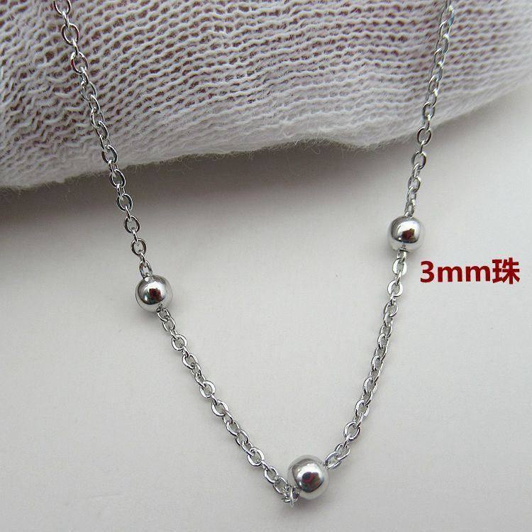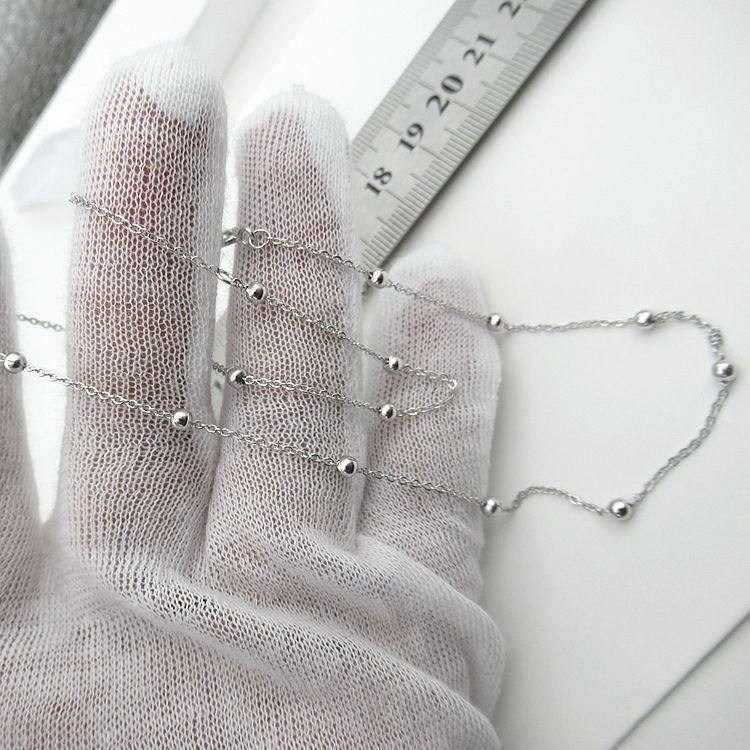 S925纯银十字间3mm珠机械银项链女学生日韩气质长款无吊坠毛衣链