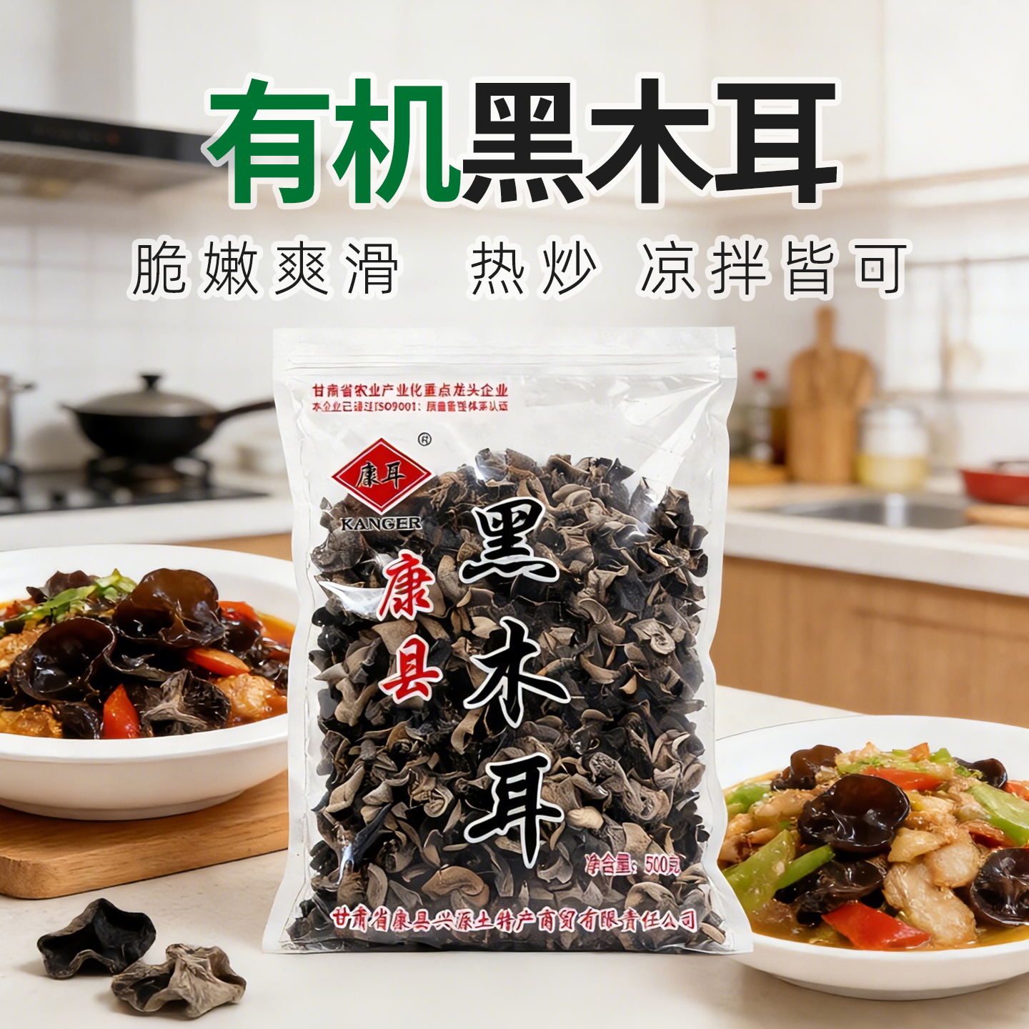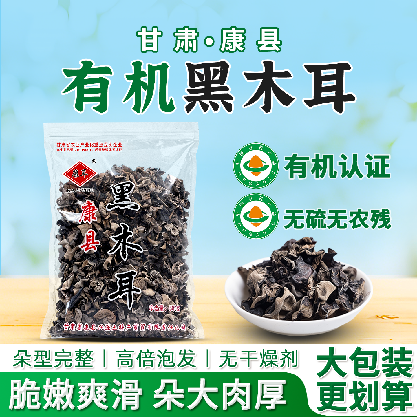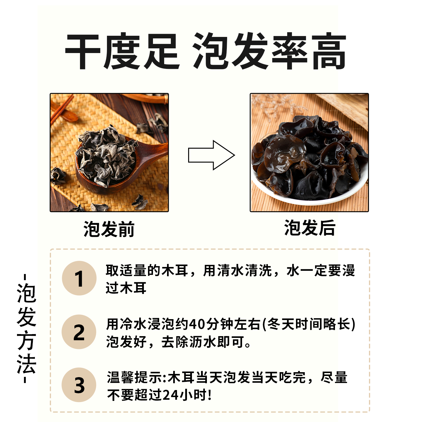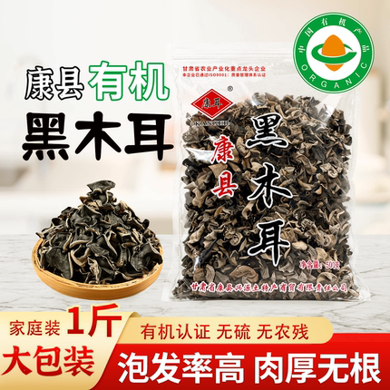 康县黑木耳干货甘肃陇南特产有机椴木黑木耳软糯头茬干木耳500g