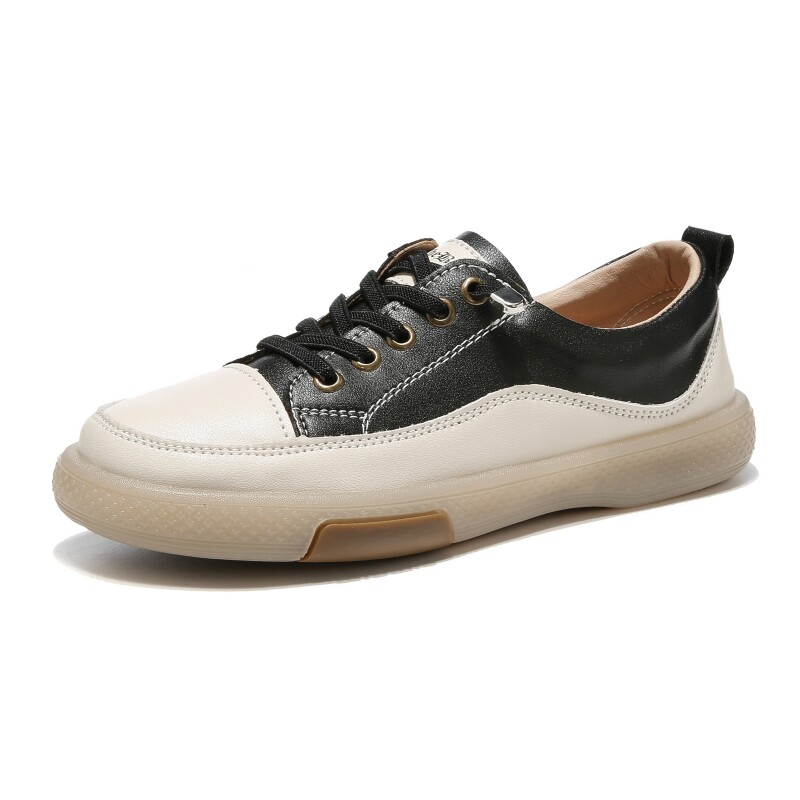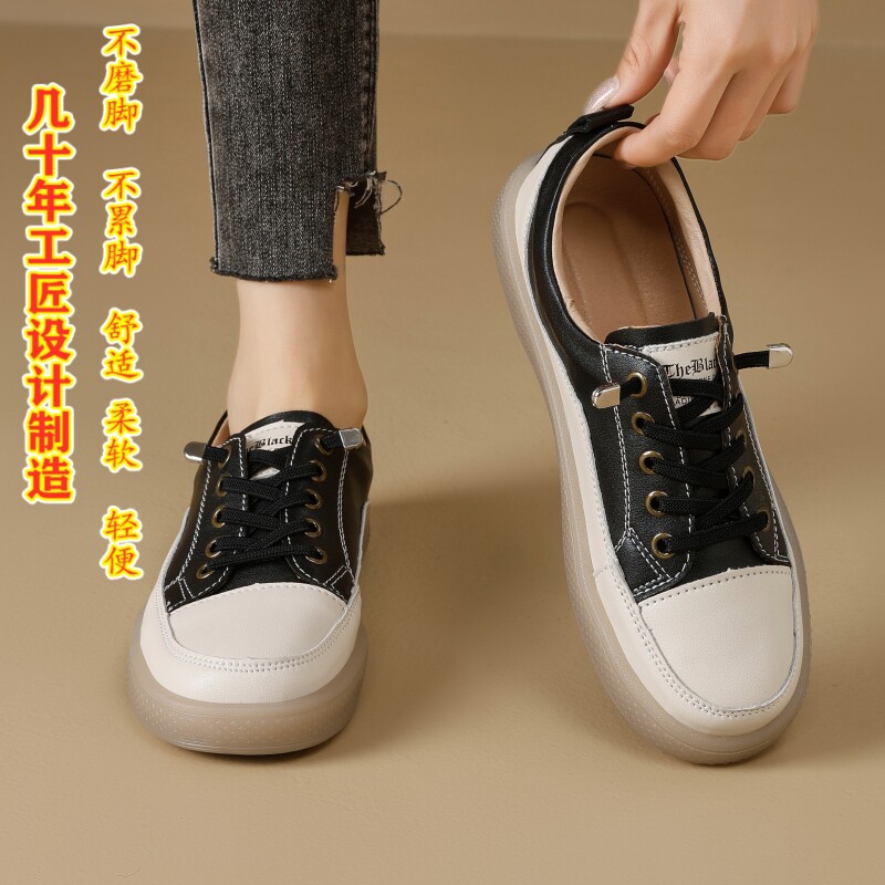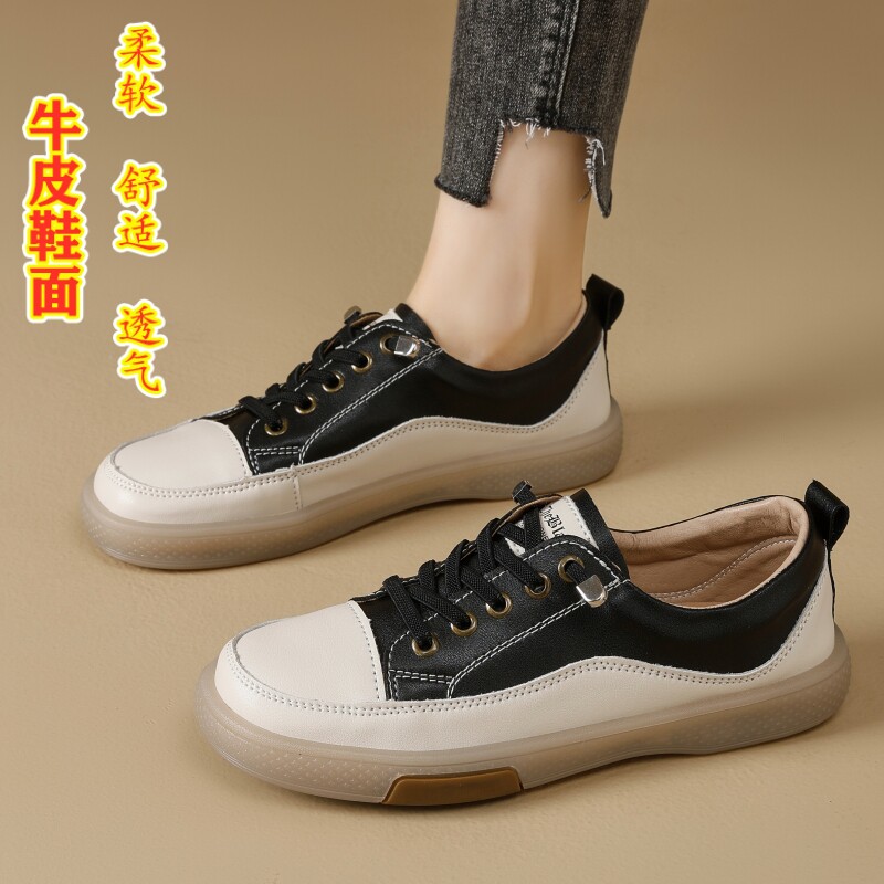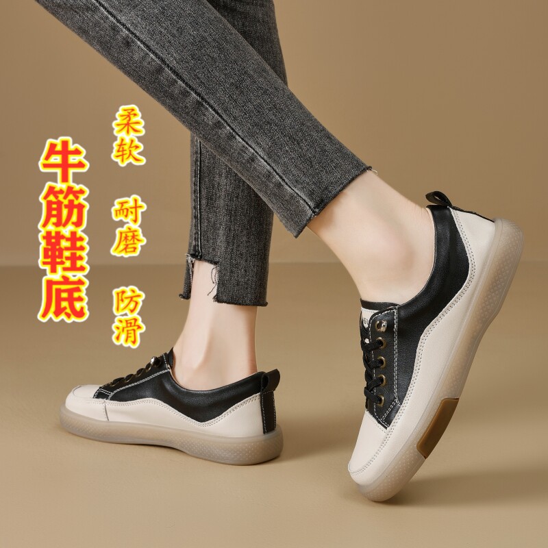 真皮小白鞋春秋季新款平底软底防滑耐磨女鞋浅口休闲板鞋百搭单鞋