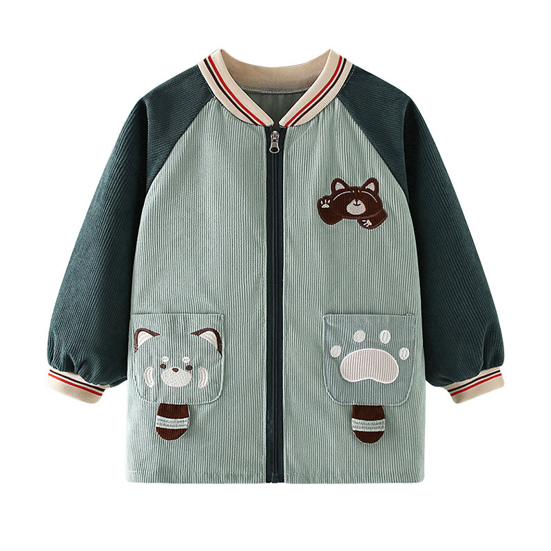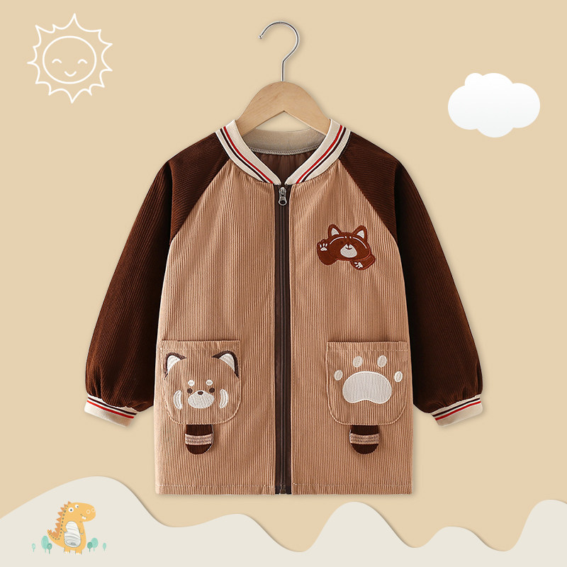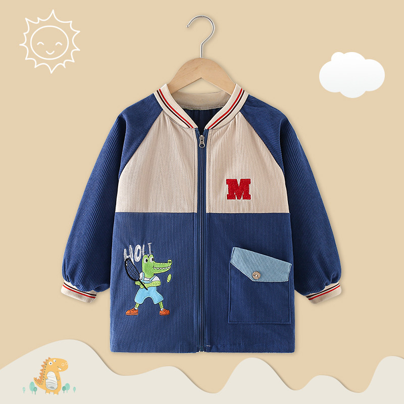 男宝宝罩衣秋冬外穿羽绒服防脏护衣儿童围裙中大童外套拉链正穿衣