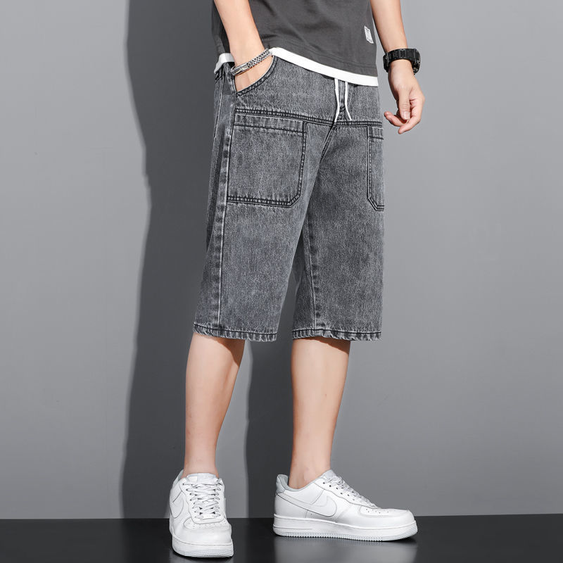 六口袋牛仔短裤男2023夏季薄款宽松大码加肥加大胖子七分中裤子男