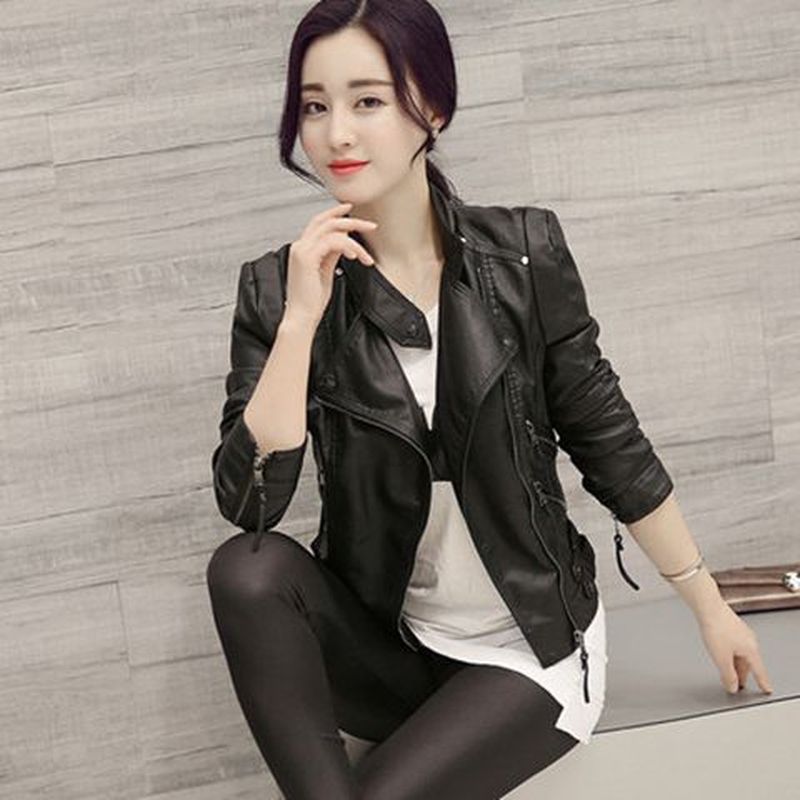 品质保证收腰皮衣女短款韩版修身立领百搭水洗pu皮夹克机车外套潮