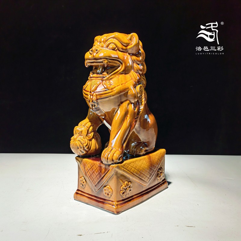 唐三彩陶瓷狮子一对门口工艺品中式风水户外建筑装饰开业乔迁摆设