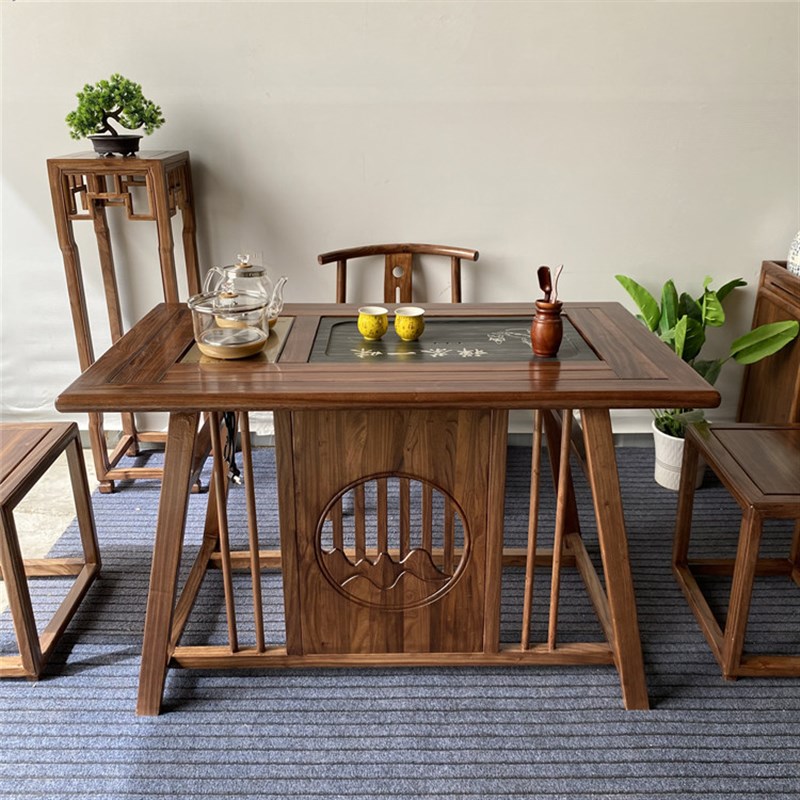 实木茶桌椅组合新中式榆木家用办公阳台小户型功夫泡茶一体茶台几