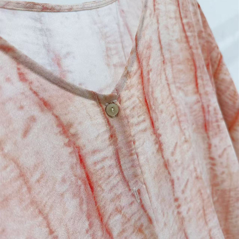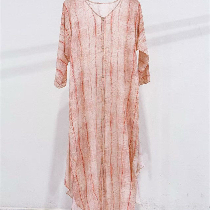 西班牙COR新款桑蚕丝V领连衣裙水彩印花真丝长裙子收腰系带