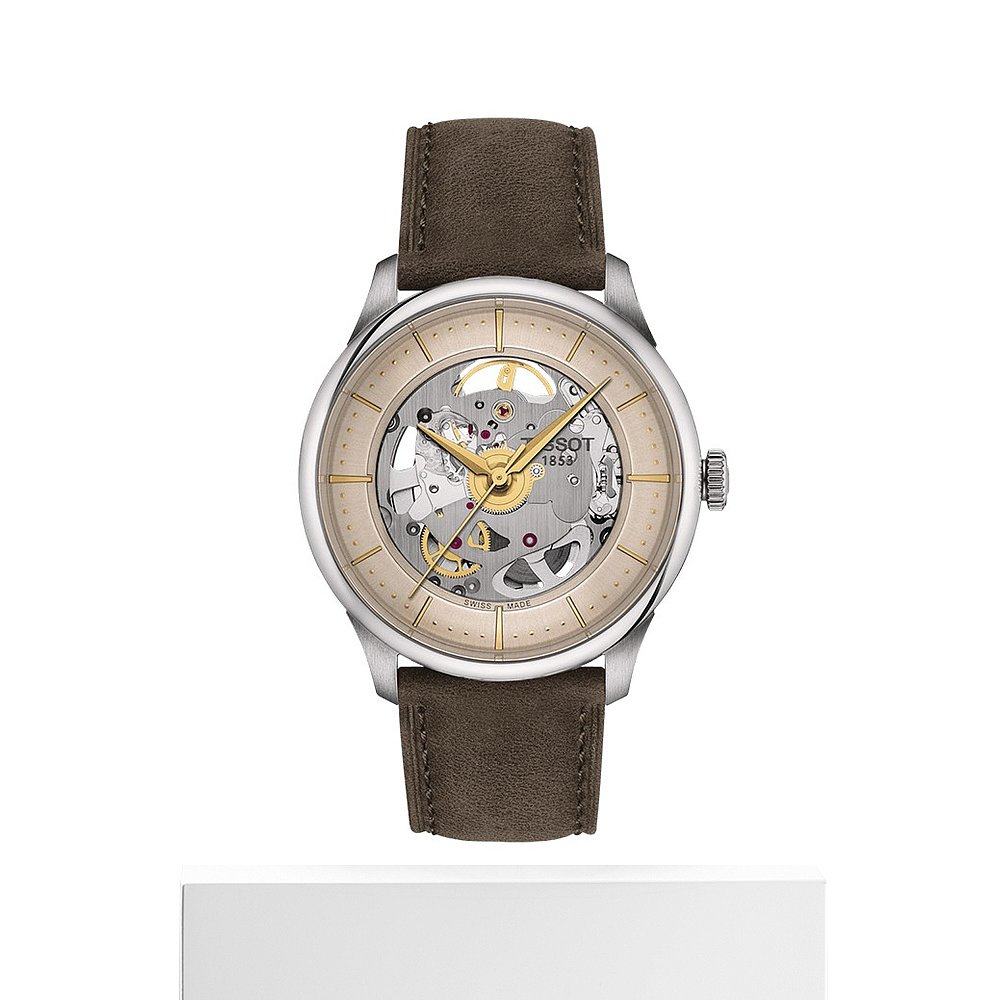自营欧洲直邮TISSOT天梭男女通用绿色防反光镂空表盘自动腕表39mm