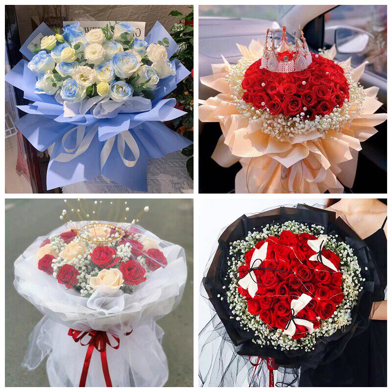 衡水市桃城区冀州区枣强县女神节碎冰蓝红玫瑰花束同城鲜花店表白