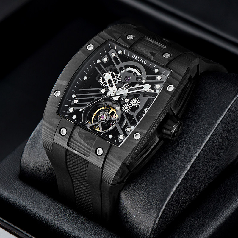 OBLVLO欧宝罗碳纤维欧美进口机械手表男镂空男潮流时尚防水理查RM