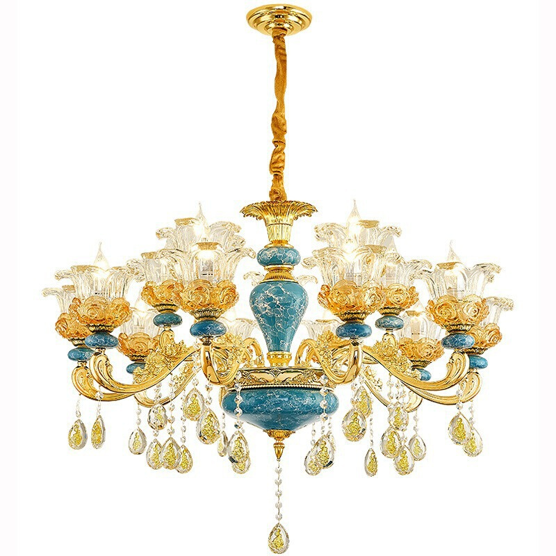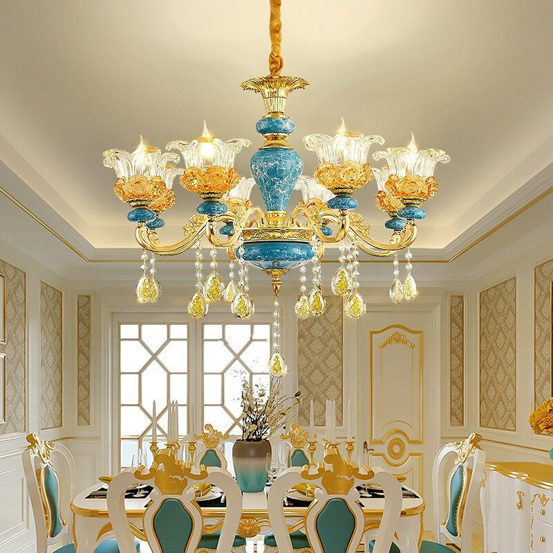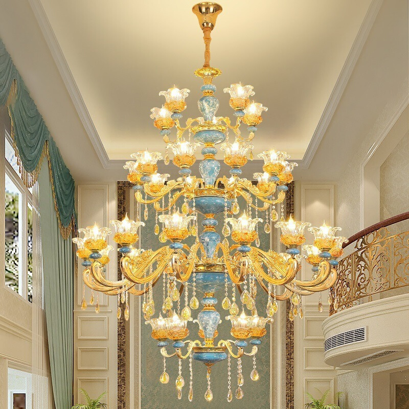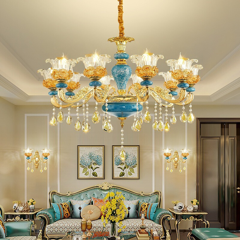 欧式吊灯奢华大气客厅灯中山灯饰锌合金法式陶瓷水晶灯别墅大厅灯