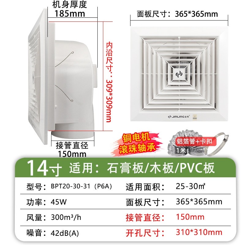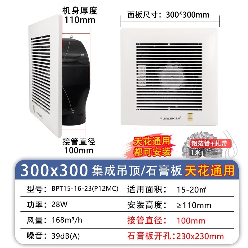 金羚铝扣板30x30cm排气扇集成吊力天花抽风机排风顶换气扇超薄强