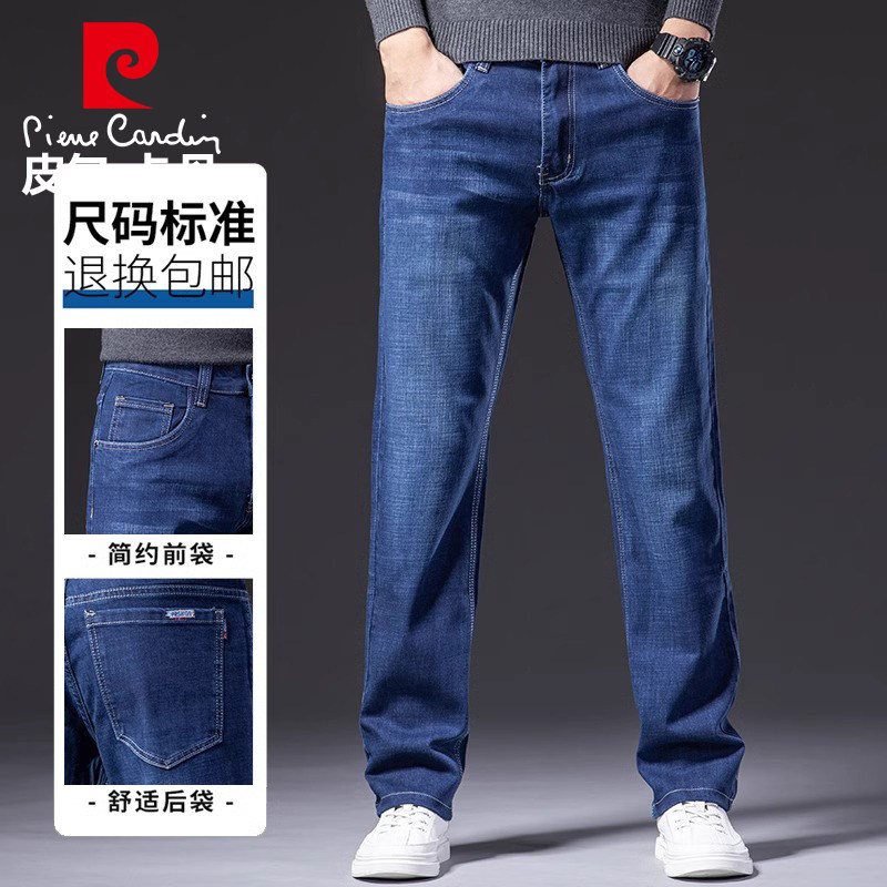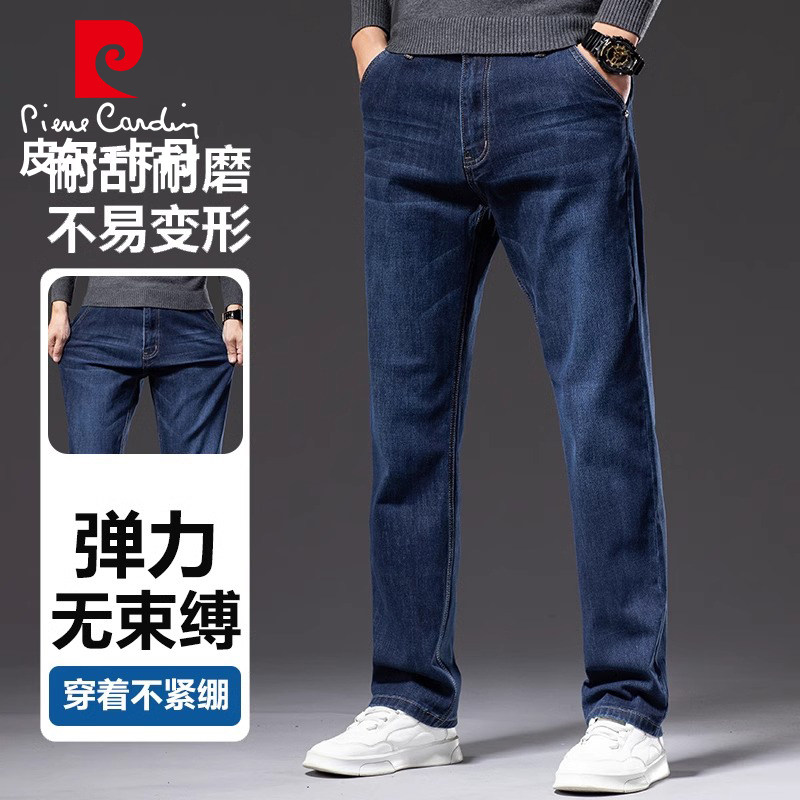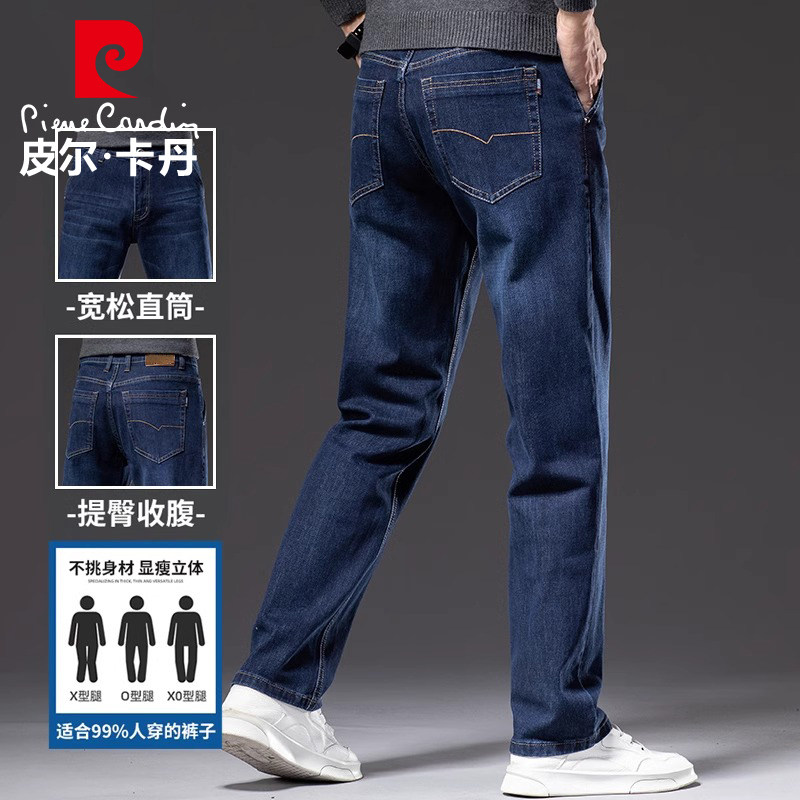 皮尔卡丹2025秋冬季新款牛仔裤男款直筒宽松高端弹力加绒加厚长裤