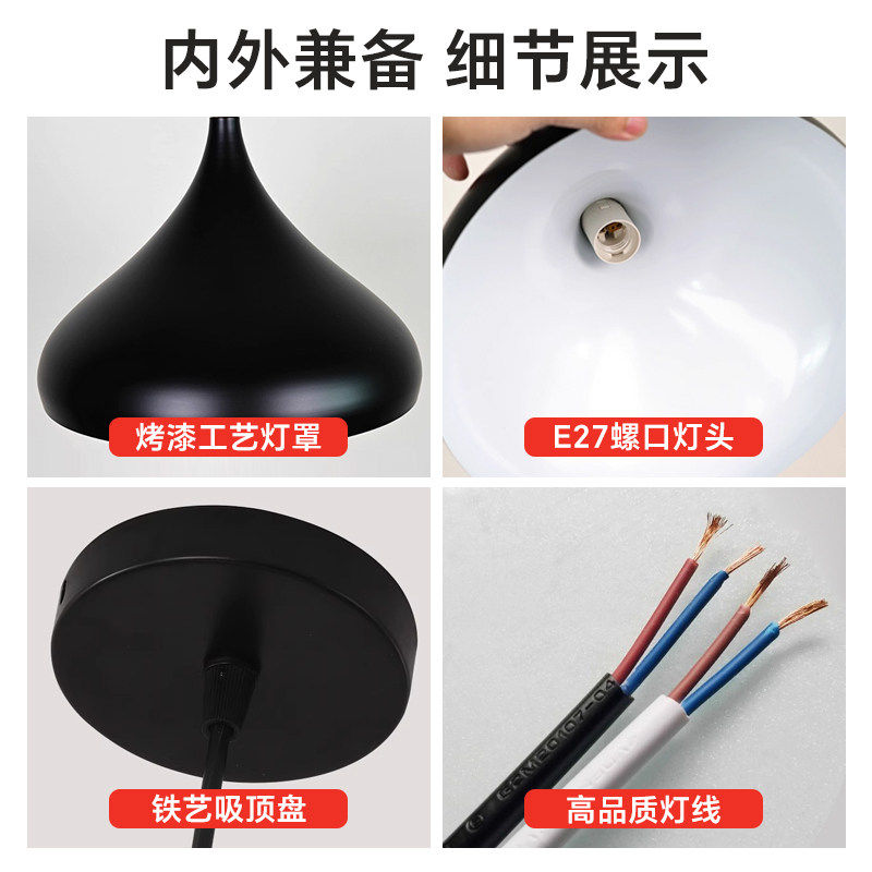 现代工业风餐厅吊灯吧台创意餐饮店铺装饰单头简约LED圆形灯罩