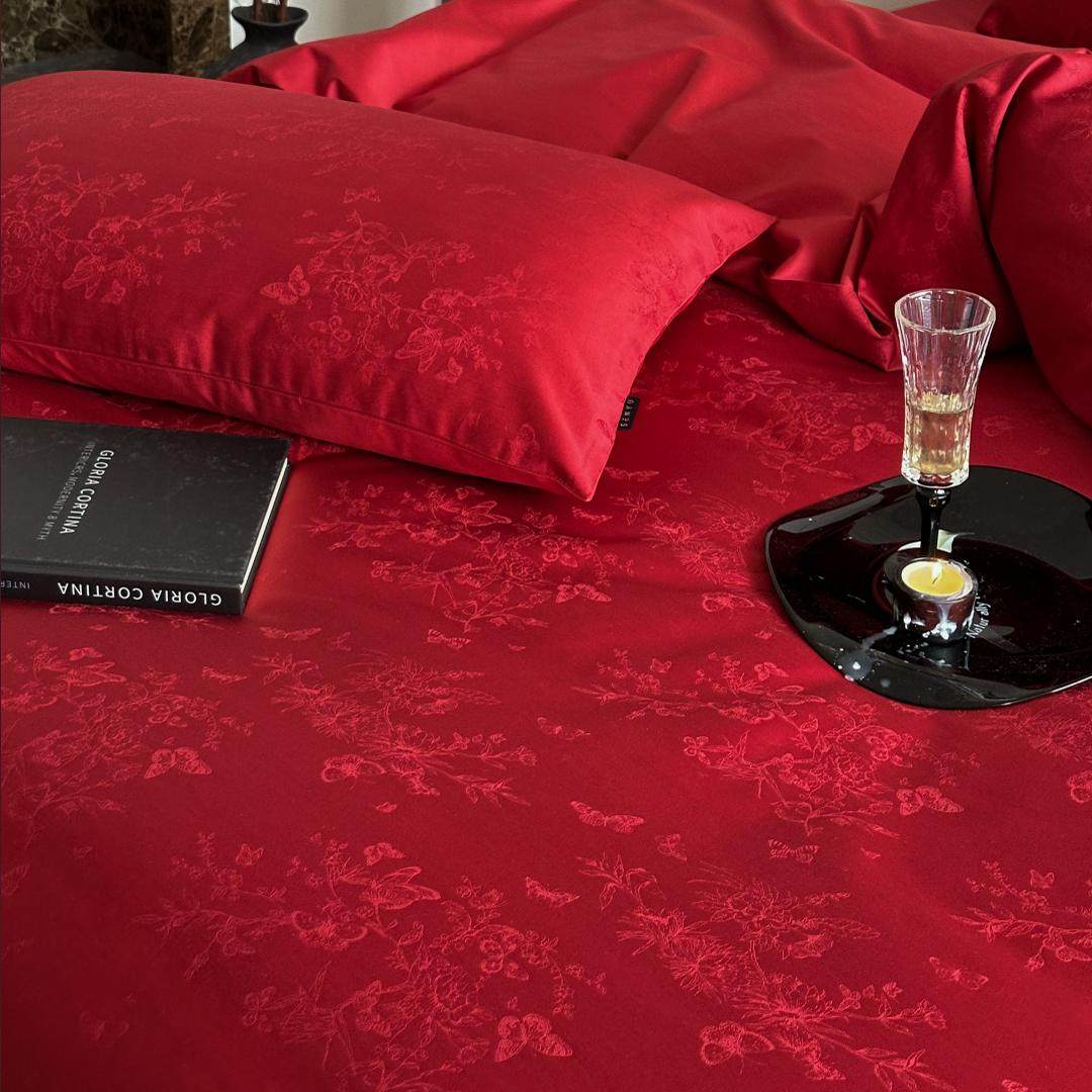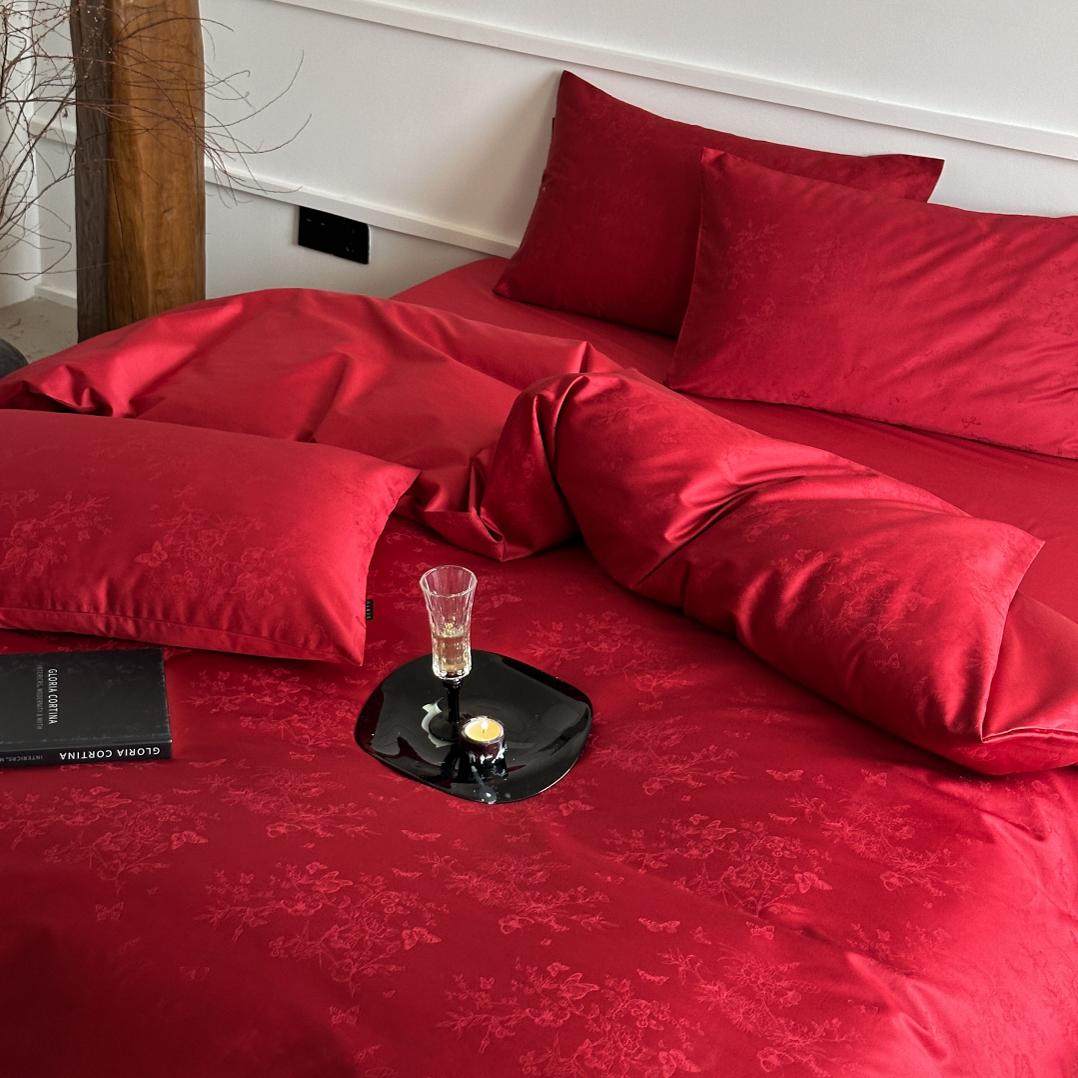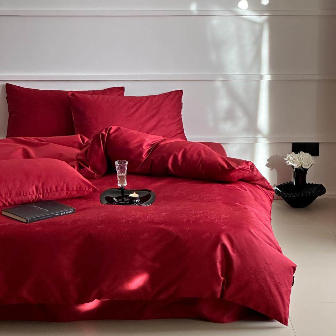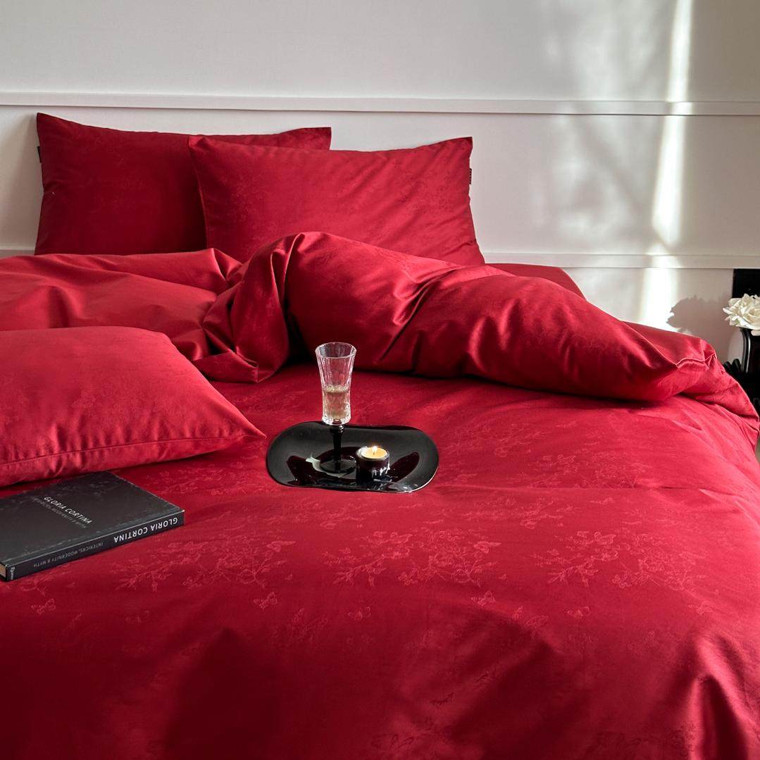 简约红色浪漫100支长绒棉全棉婚庆四件套纯棉被套结婚房床上用品