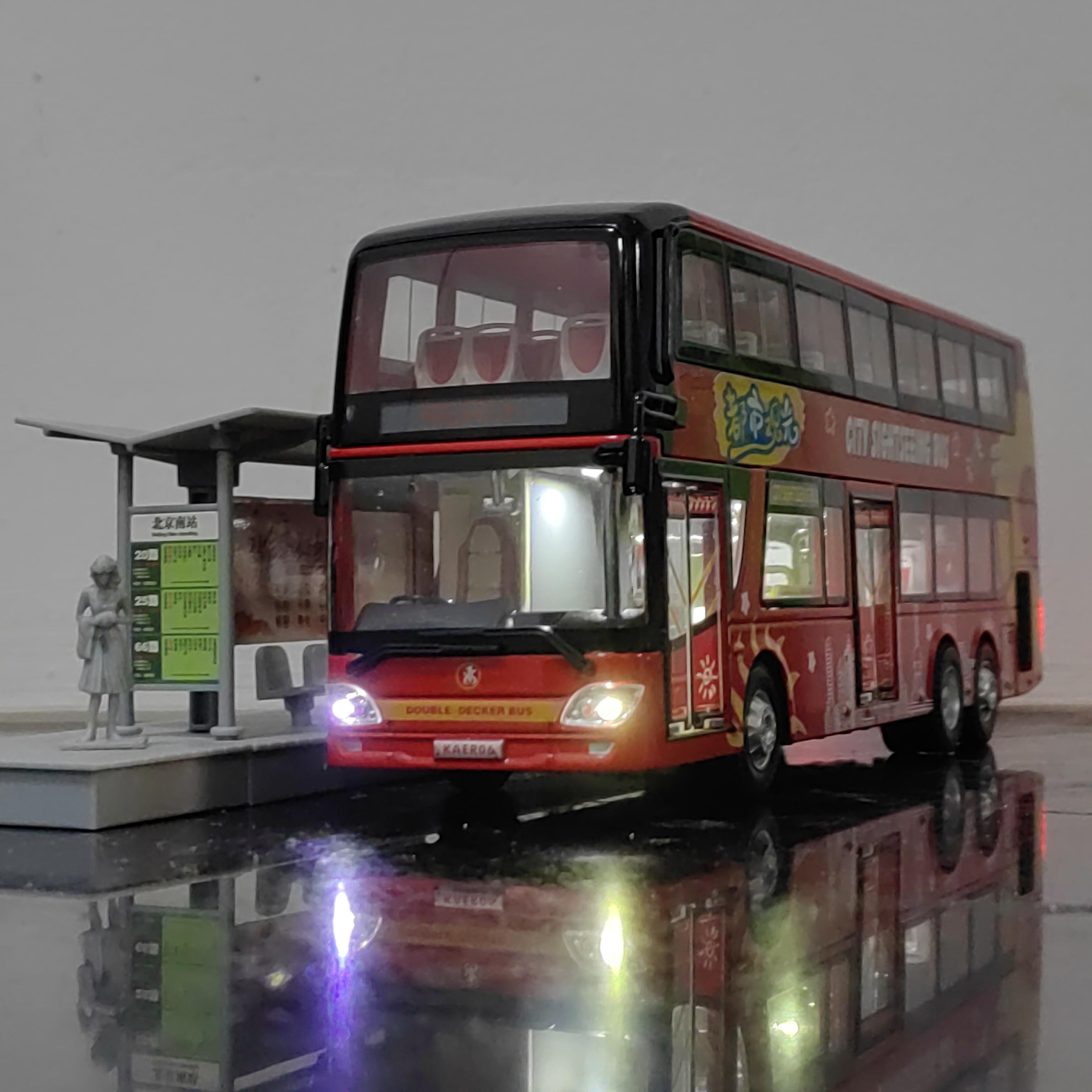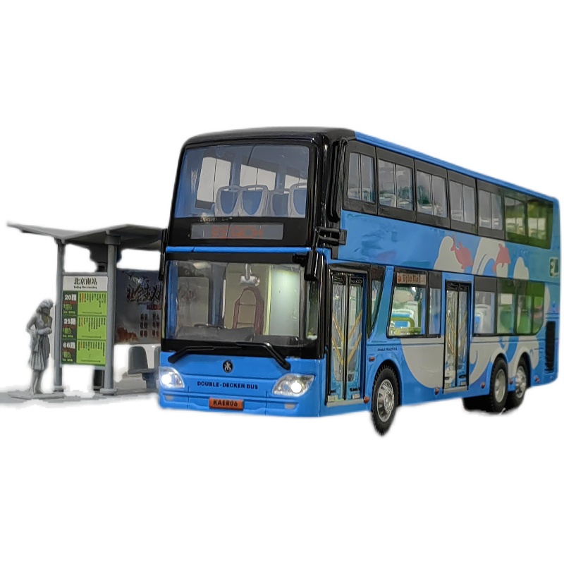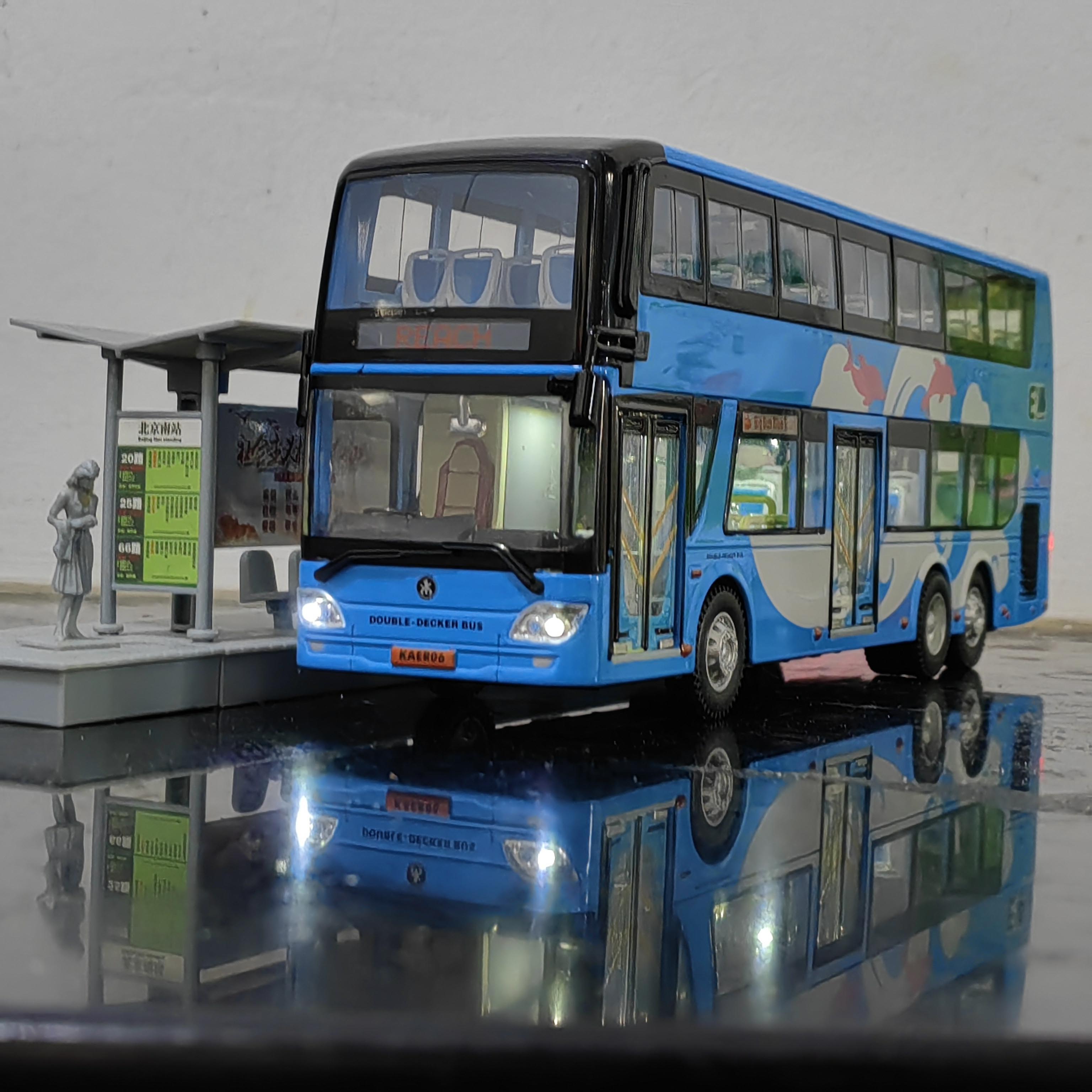 1:43 北京公交模型 福田客车双层巴士祥云蓝北电大公交车玩具定制