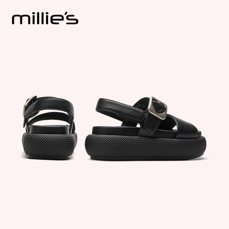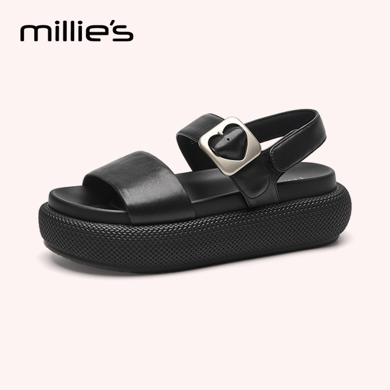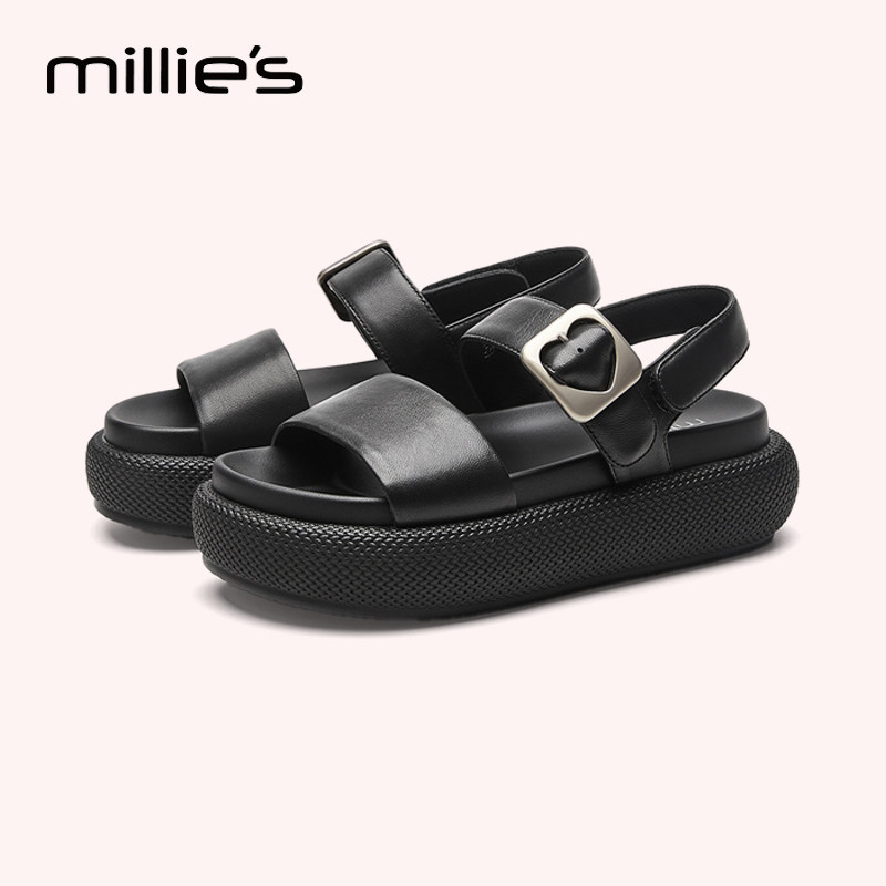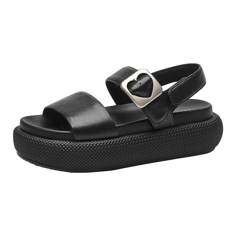 妙丽官方旗舰店2025新款夏季厚底露趾凉鞋女外穿皮带扣真皮休闲鞋
