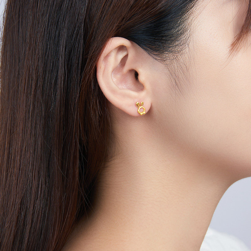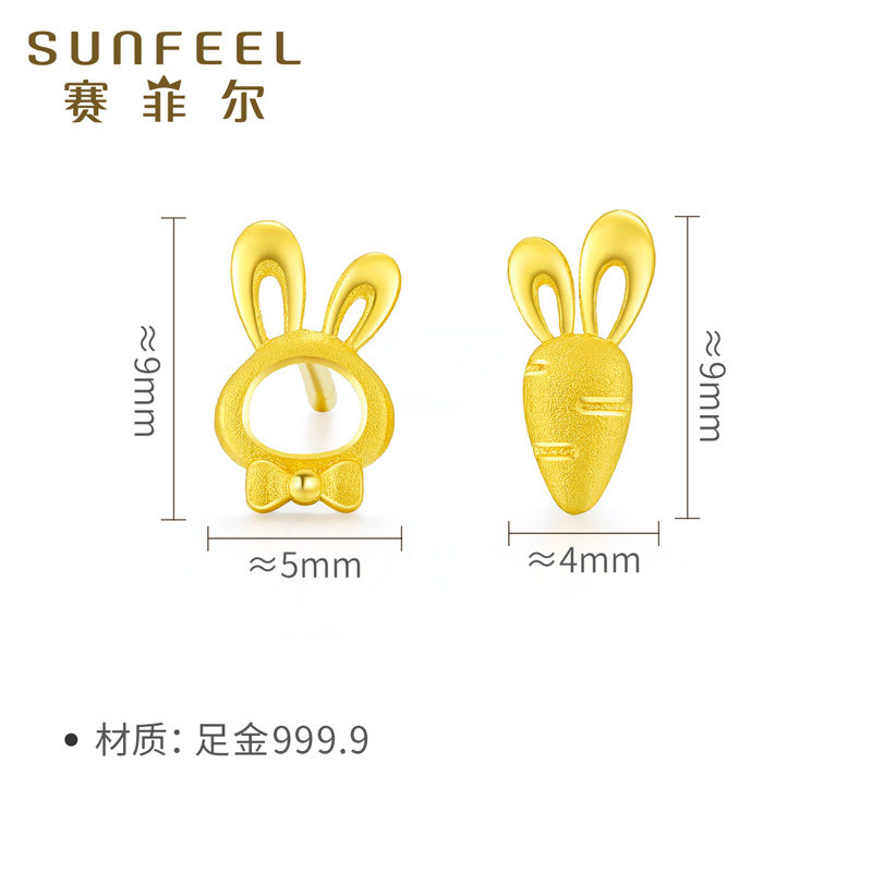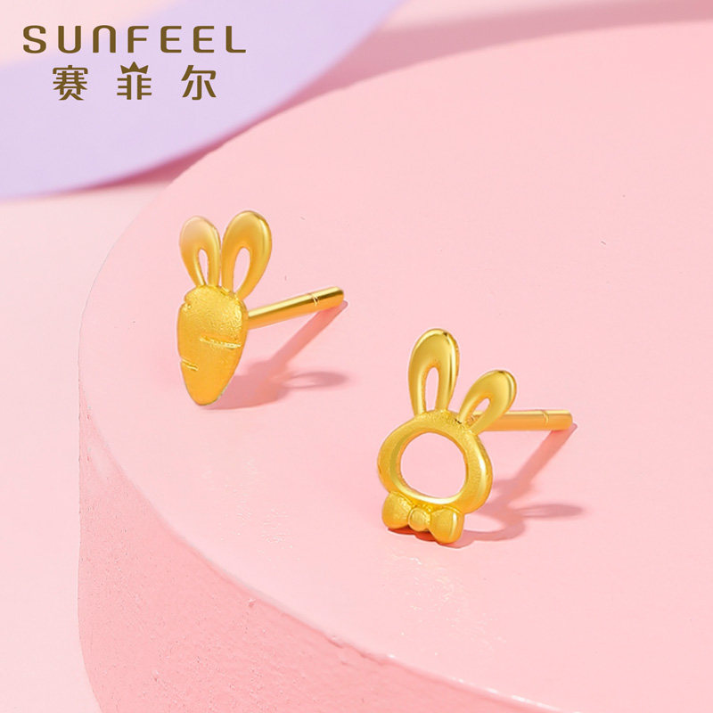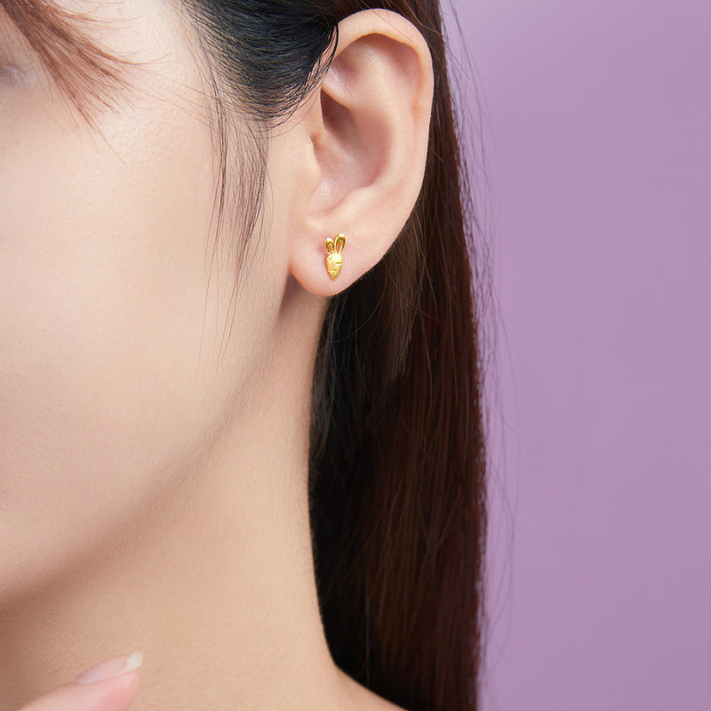 赛菲尔黄金耳饰足金999.9胡萝卜耳钉小兔子耳钉迷你养耳棒送女友