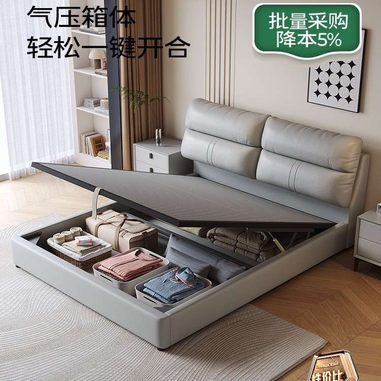 真皮床主卧床双人1.8x2米婚床次卧现代简约床储物1.5米轻奢软包床