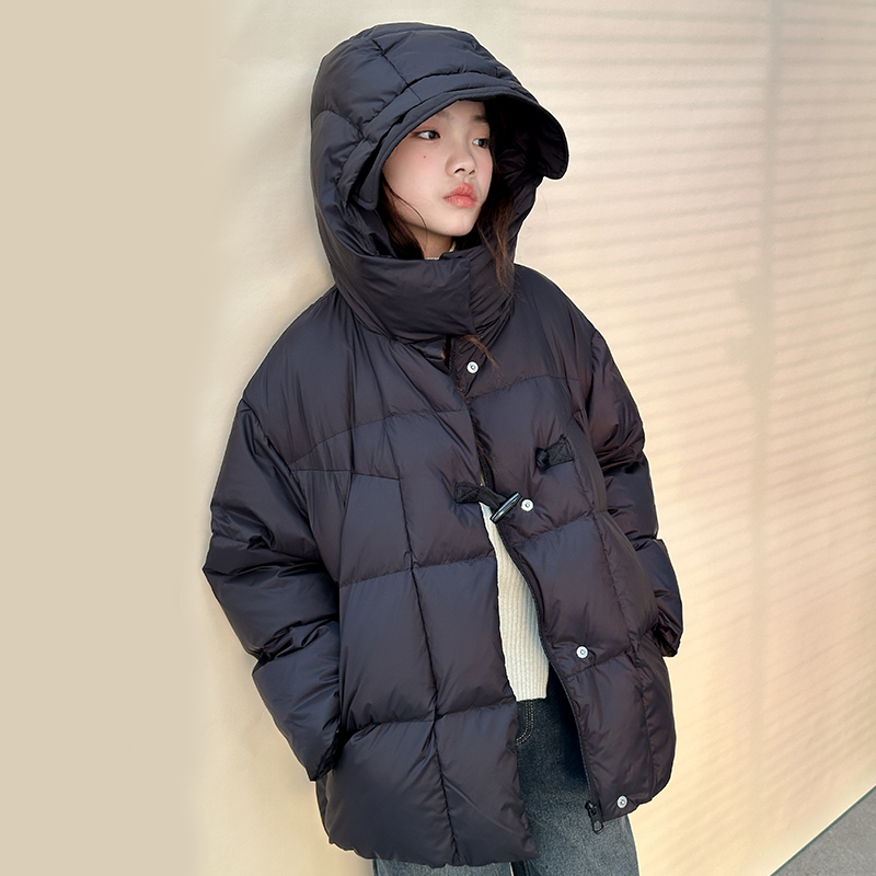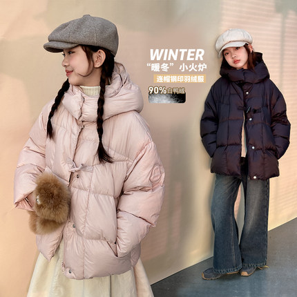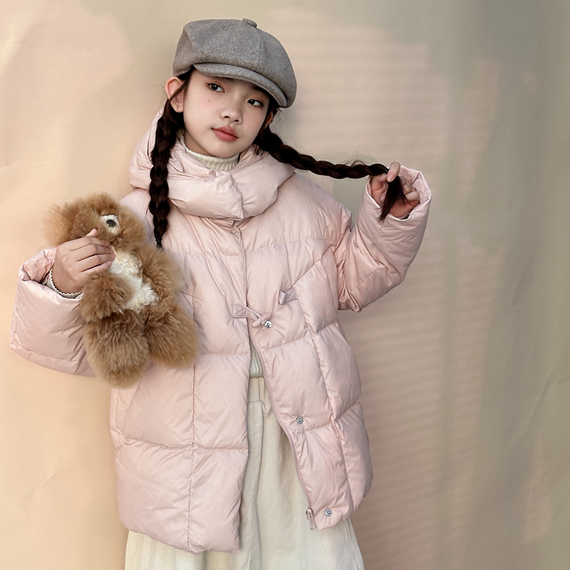女童羽绒服外套冬季2024新款儿童宽松保暖90白鸭绒牛角扣上衣百搭