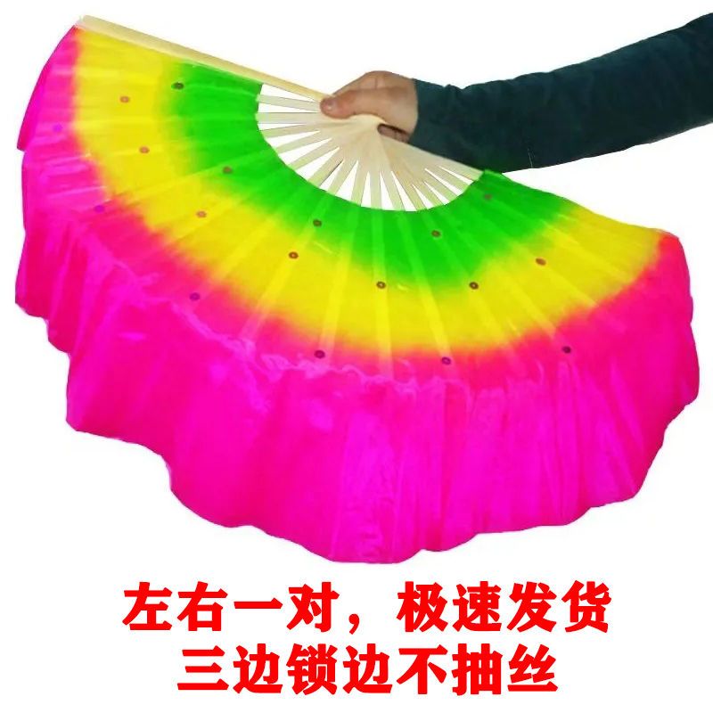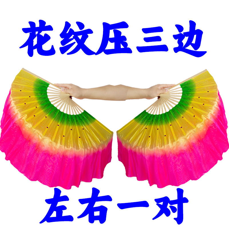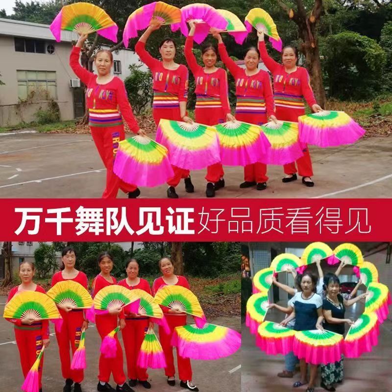 舞蹈扇子竹子打磨双面仿真丝成人广场舞扇东北表演跳舞扇子秧歌扇