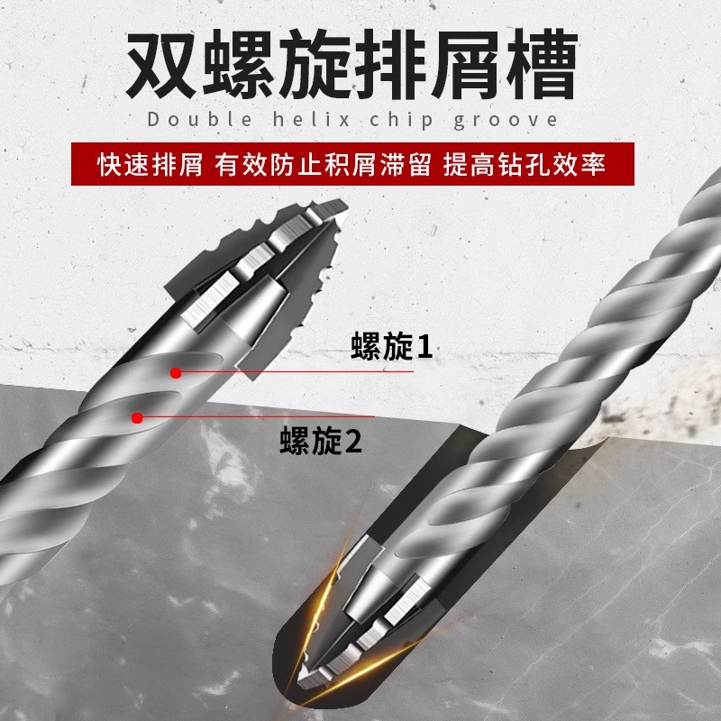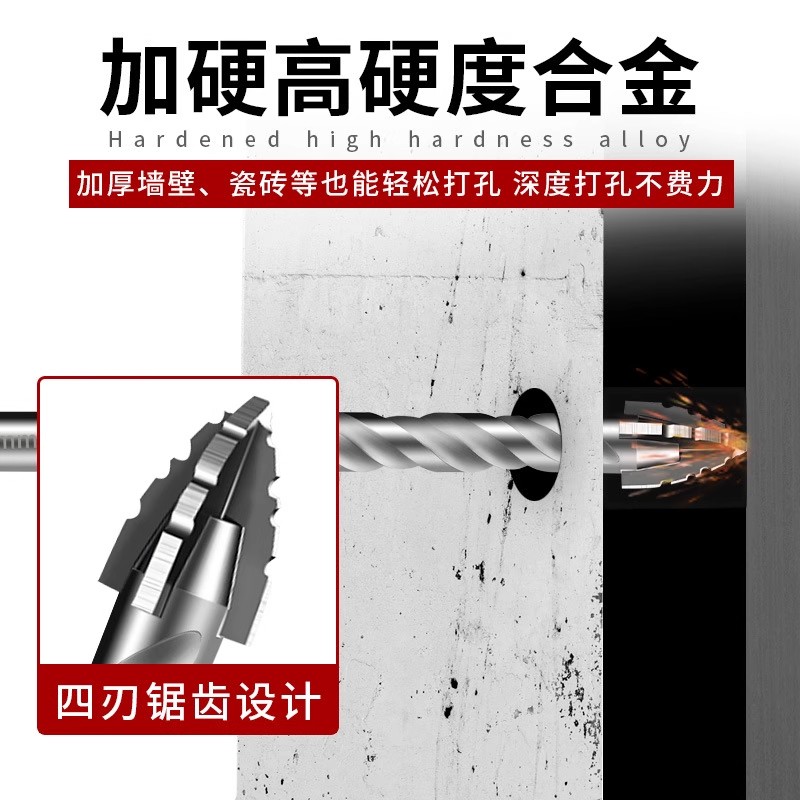 瓷砖轻型电锤两坑两槽6圆柄8玻璃10打孔12四刃锯齿偏心冲击钻头14