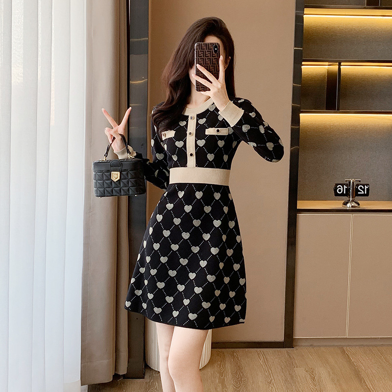 十三行2025秋冬新款小香风针织连衣裙女中长款修身气质A字毛衣裙