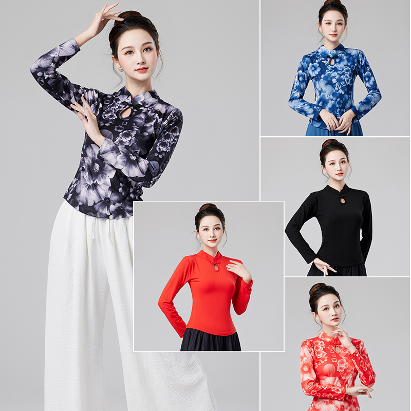民族风广场舞服装夏季女新款立领修身短袖上衣现代古典舞蹈训练服