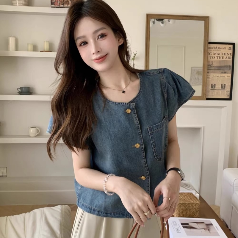 夏季休闲上衣披肩坎肩牛仔衬衫女