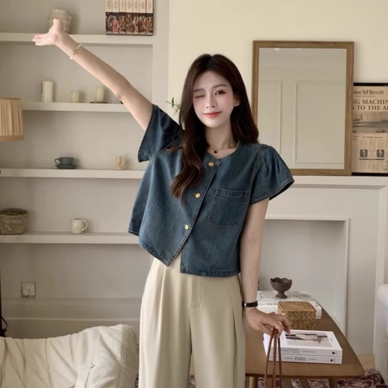 百搭时尚短袖小外套薄款2025夏季新款休闲上衣披肩坎肩牛仔衬衫女