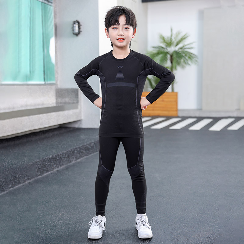 UTO悠途儿童竹炭保暖内衣大童运动排汗内衣男童透气快干内衣套装