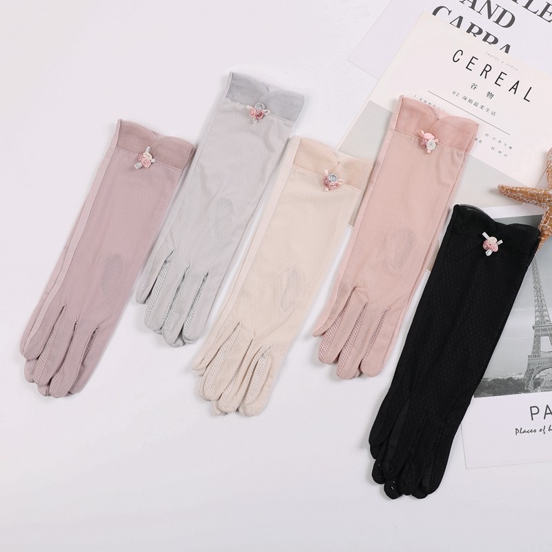 夏季冰丝薄款透气蕾丝遮阳手套女骑车开车驾驶防滑可触屏手袜手袖