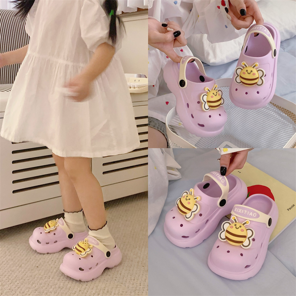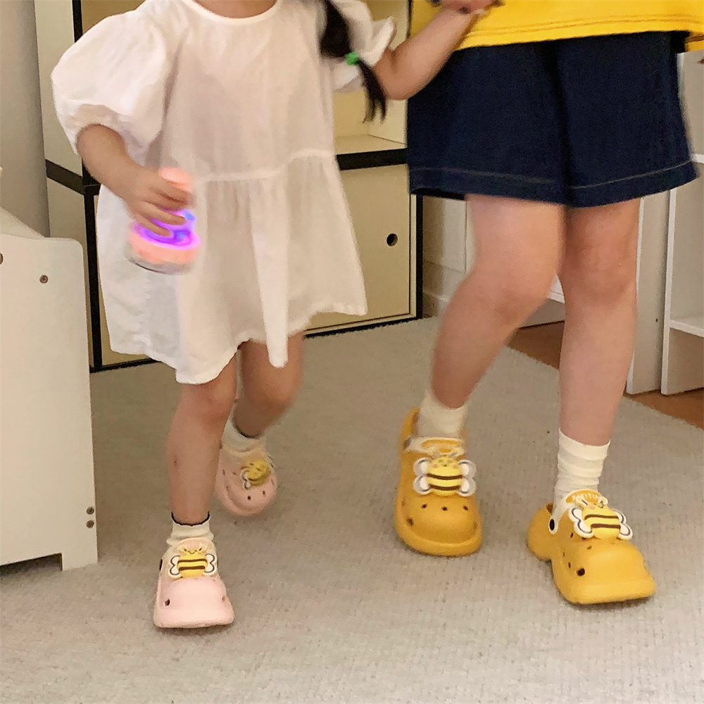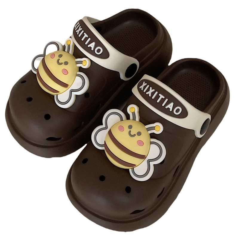 细细条 立体小蜜蜂儿童夏季凉拖鞋男童女童可爱亲子拿铁色洞洞鞋