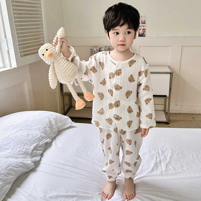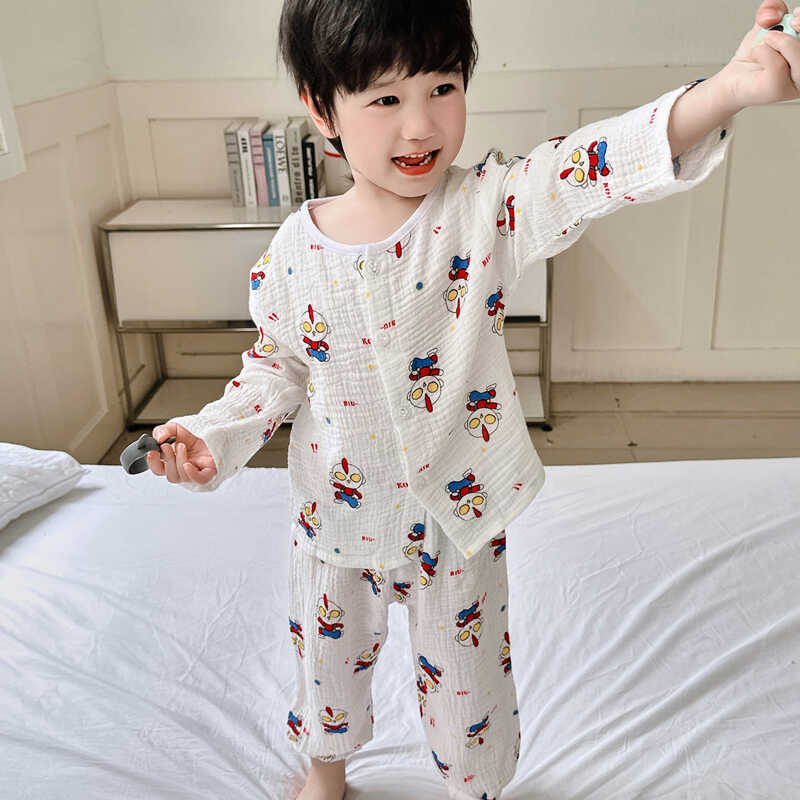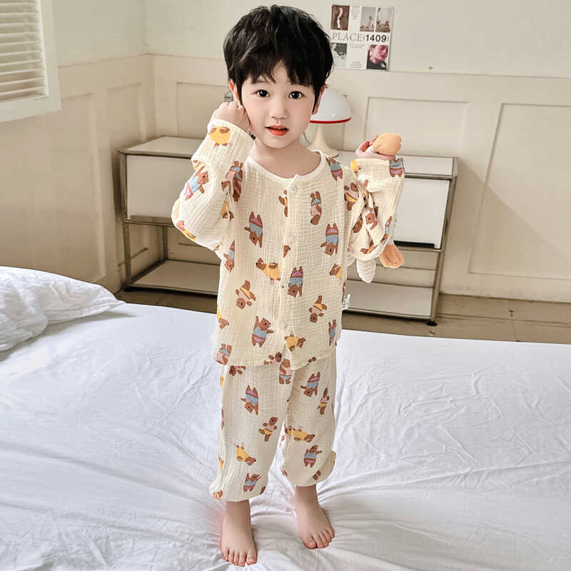 2025新款儿童夏季薄款睡衣套装纯棉短长袖男孩家居服女宝宝空调服