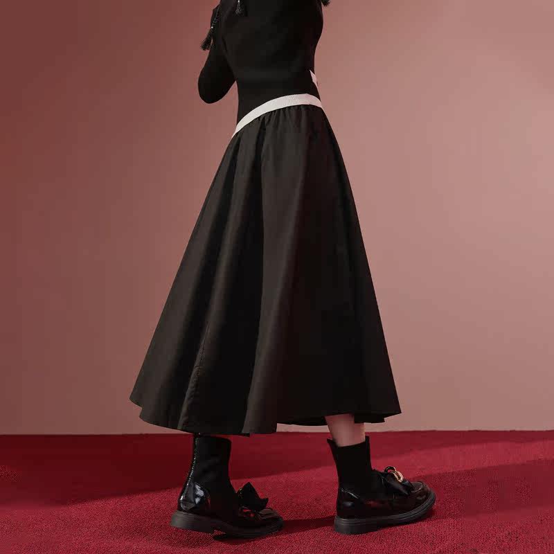 爱居兔纯棉宽松廓型黑色长裙
