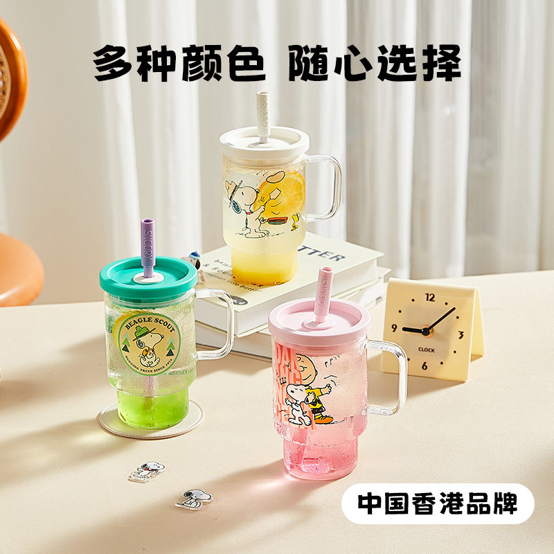 【自营】卡罗特史努比玻璃杯女带吸管杯子大容量把手夏天刻度水杯