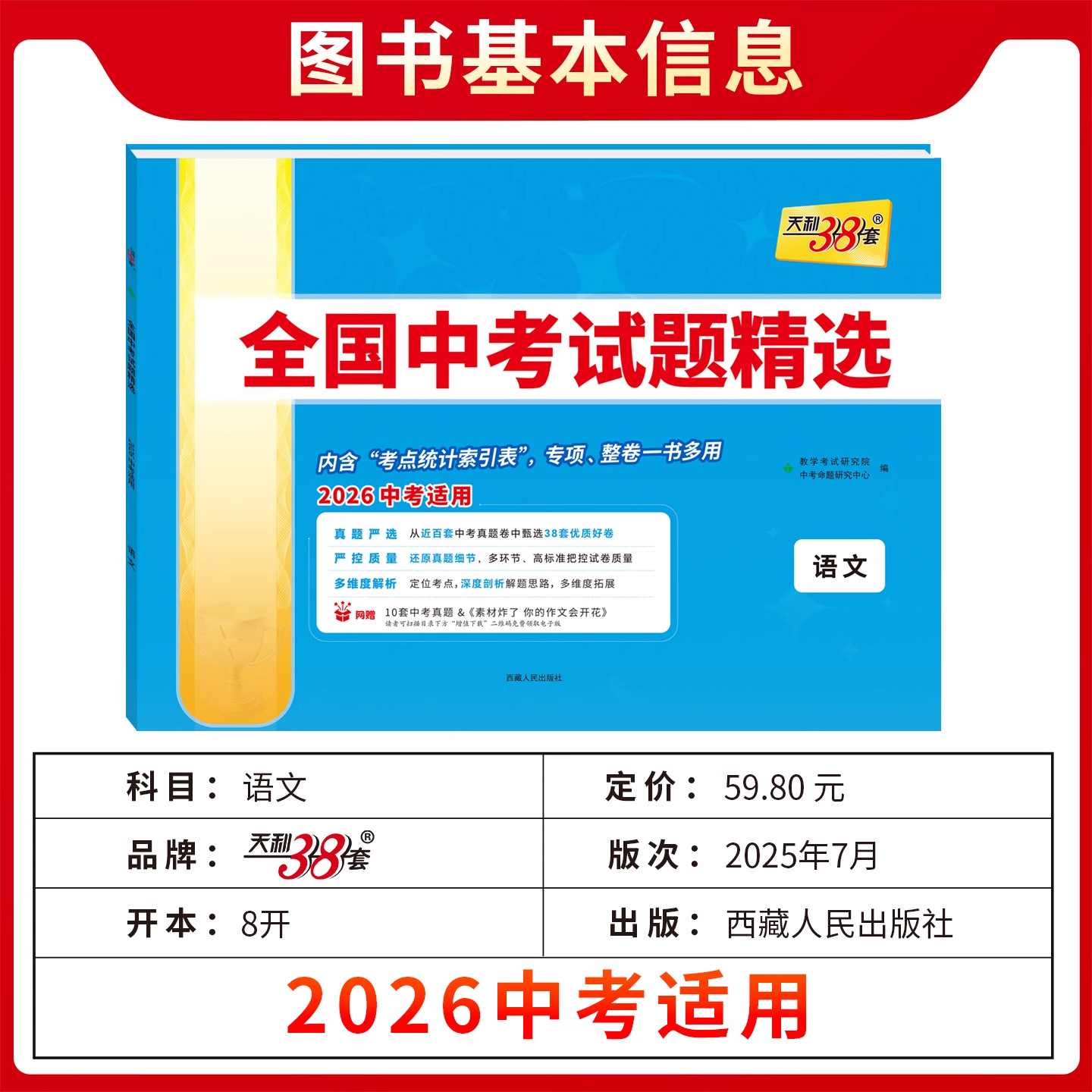 2026新天利38套中考语文数学英语物理化学生物政治历史地理全国中考试题精选初中2025新课标历年真题初三九年级试卷资料书压轴题