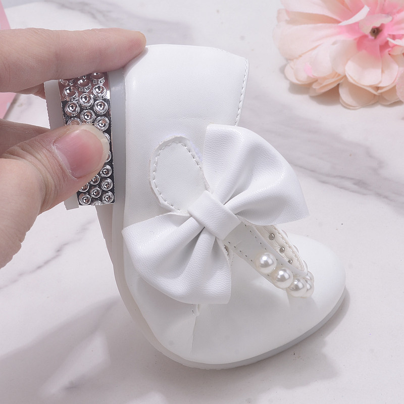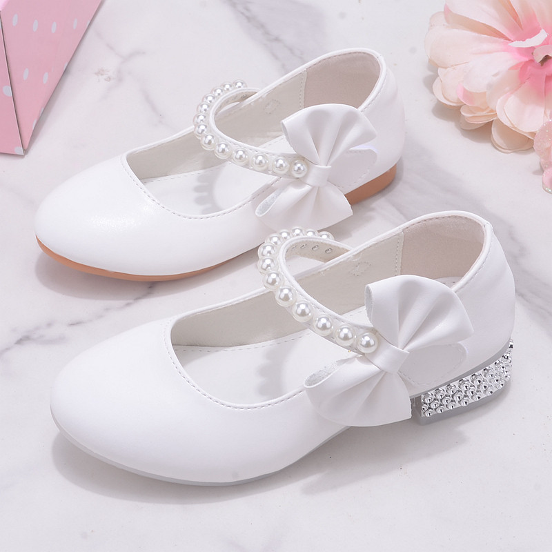 女童白色皮鞋公主风春秋儿童走秀小白鞋小女孩高跟鞋学生软底单鞋