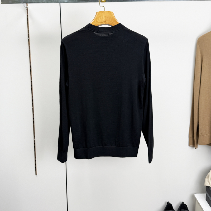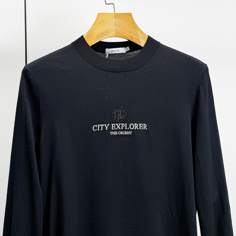 DEICAE/迪赛男装 25秋装轻薄舒适亲肤半高领套头刺绣黑色男羊毛衫