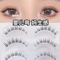 婴儿弯漫画睫~兔奶奶fk57妈生感超自然透明细梗整条卷翘假睫毛