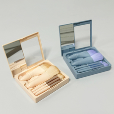 5支带镜子化妆刷旅行套装软毛散粉刷眼影刷子平价便携莫兰迪开窗