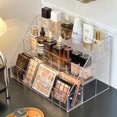 化妆品收纳盒桌面高级感阶梯置物架亚克力梳妆台眼影盘香水展示架