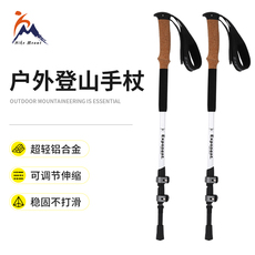 仙僖俫超轻超短折叠登山杖伸缩外锁手杖徒步爬山装备非碳素拐杖户