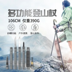 酷然户外多功能登山杖男女折叠款碳素超轻伸缩爬山手杖拐扙棍装备