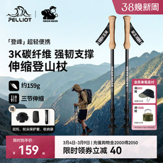 开拓者三节伸缩登山杖 99%碳纤维手杖 J外锁碳素拐杖 户外登山装