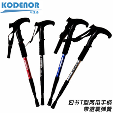 迪拓户外减震登山杖超轻伸缩行山手杖爬山多功能徒步防身登山棍
