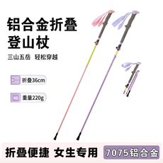 户外登山杖女款超轻便携铝合金伸缩折叠便携专业爬山徒步登山手杖