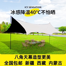 户外天幕露营帐篷遮阳棚便携式涂银防晒方形六角大型野营凉棚野餐