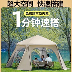 自动速开免搭建穹顶天幕帐篷黑胶防雨防晒大空间家庭户外露营帐篷