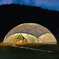 野外酒店帐篷全景玻璃锥形顶设计隔绝蚊虫却不隔绝风景抗风防水